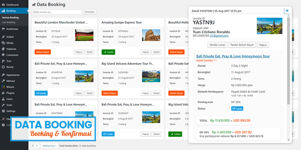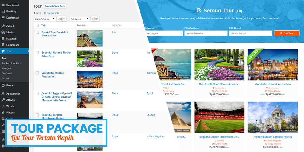 Dilengkapi panel khusus untuk menambahkan informasi tour/paket wisata. Seperti: harga tour, foto, video dan info lainnya. Sehingga, Anda tidak akan bingung untuk menambahkan tour baru.
